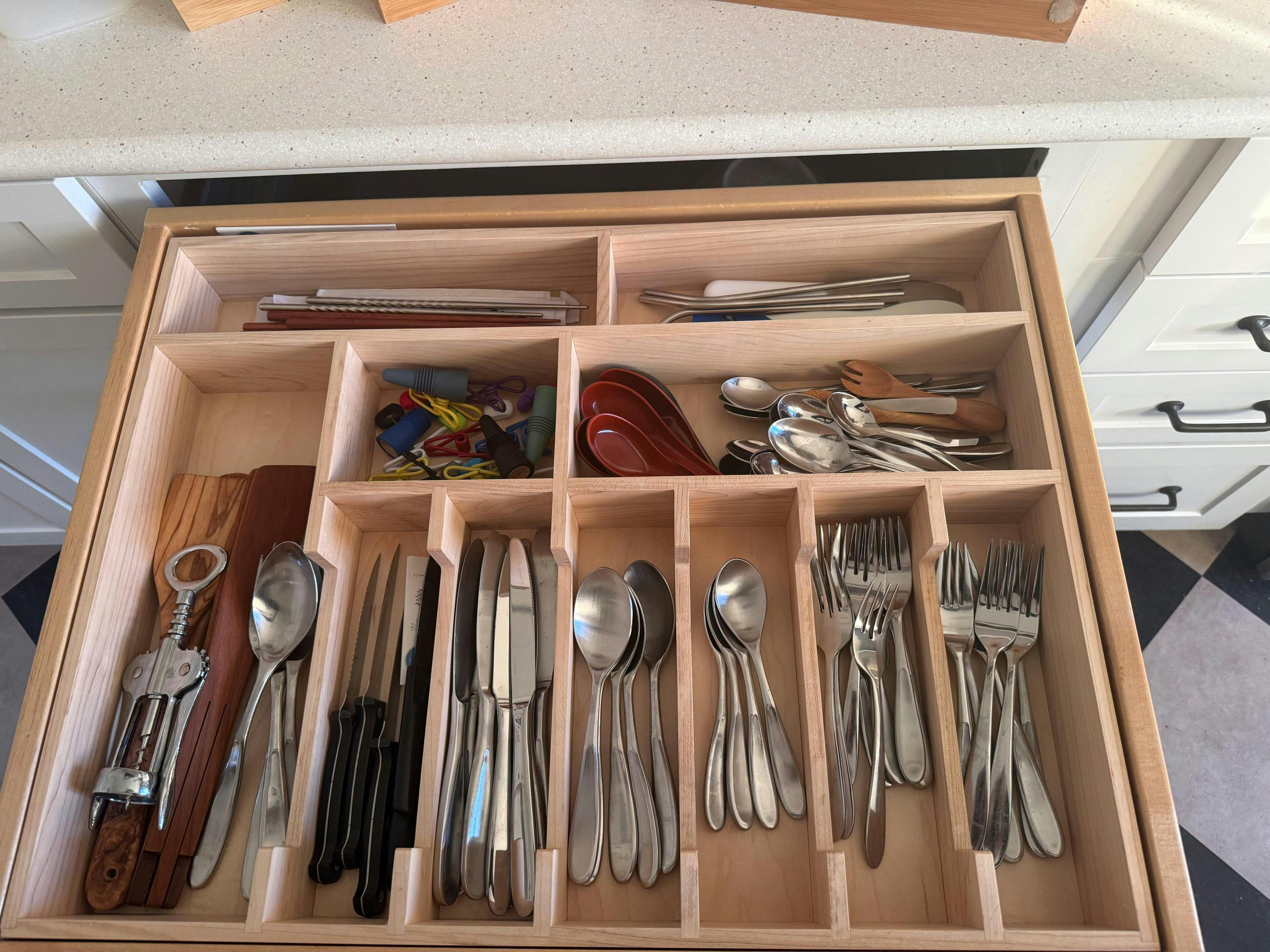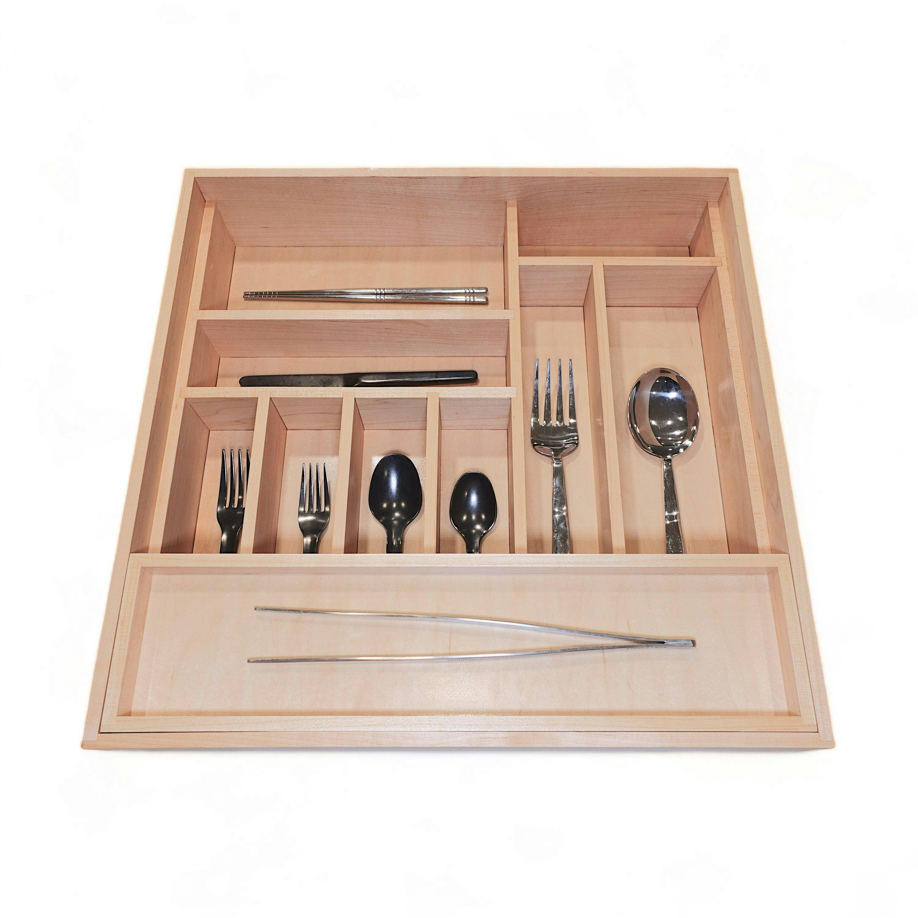 The build quality is exceptional and the organizer is beautiful. I could tell this shop cares about quality and customer satisfaction, from the design work to the craftsmanship to the shipping. The flatware organizer was exactly what I was looking for. I highly recommend this shop.