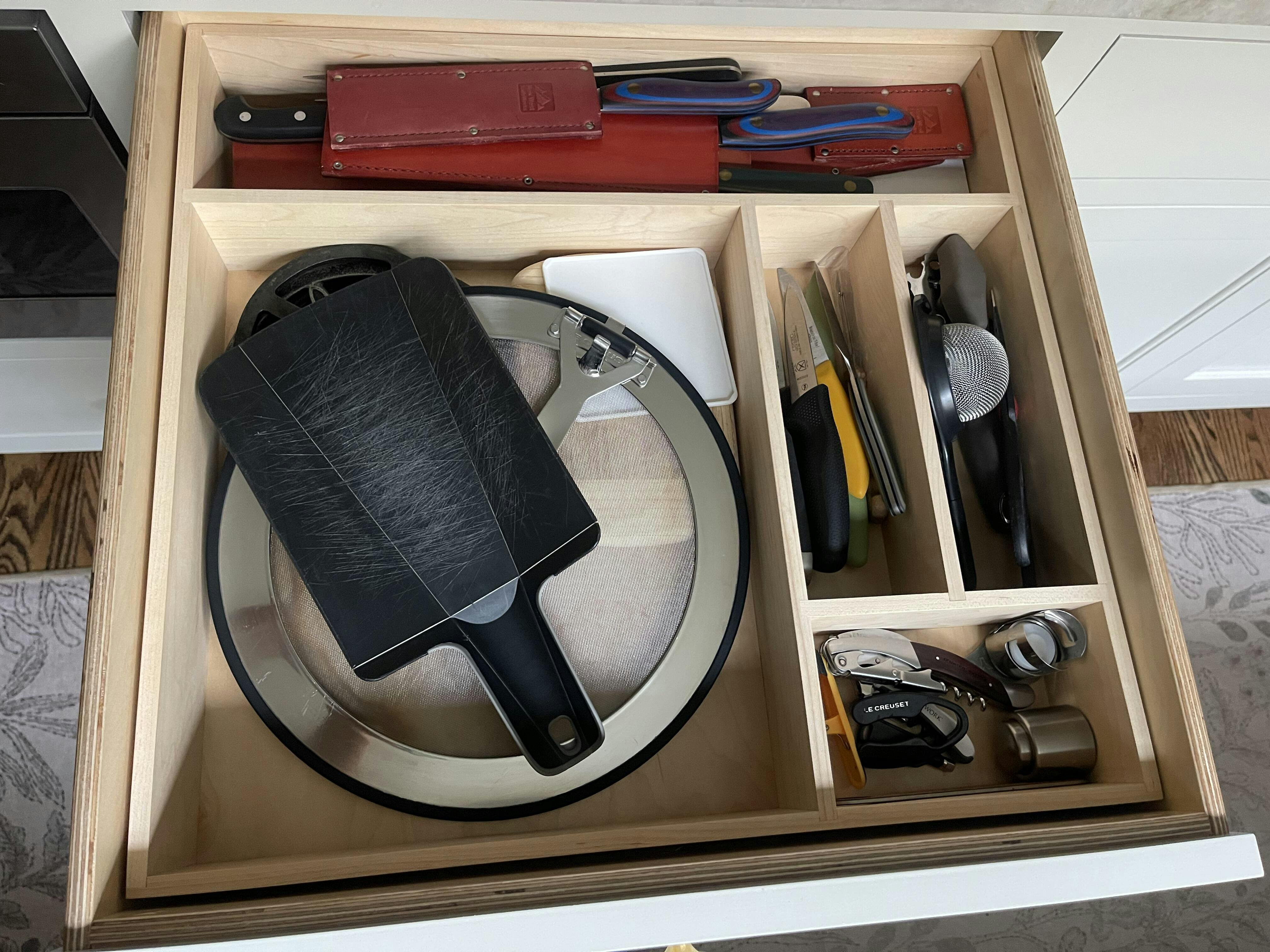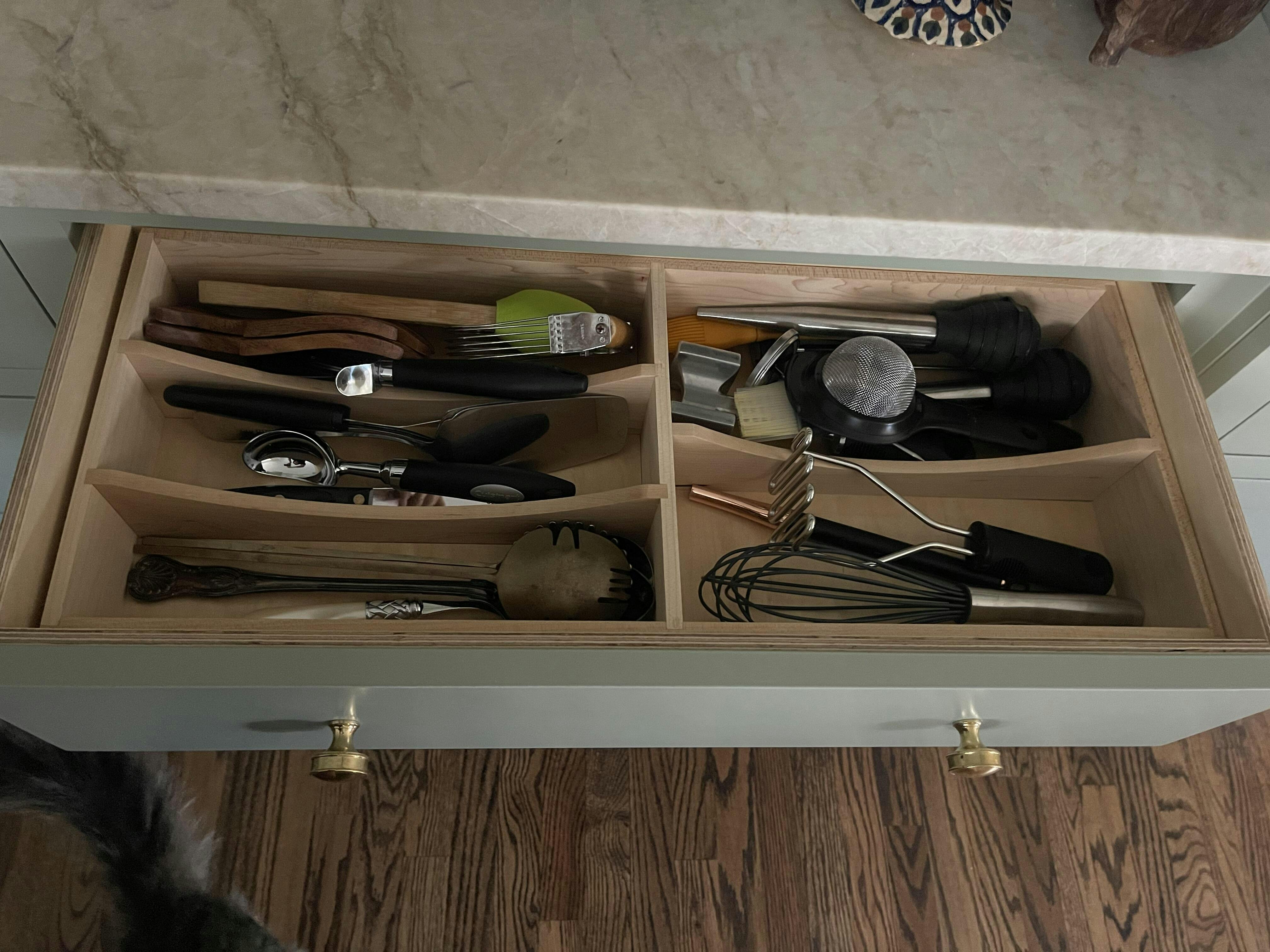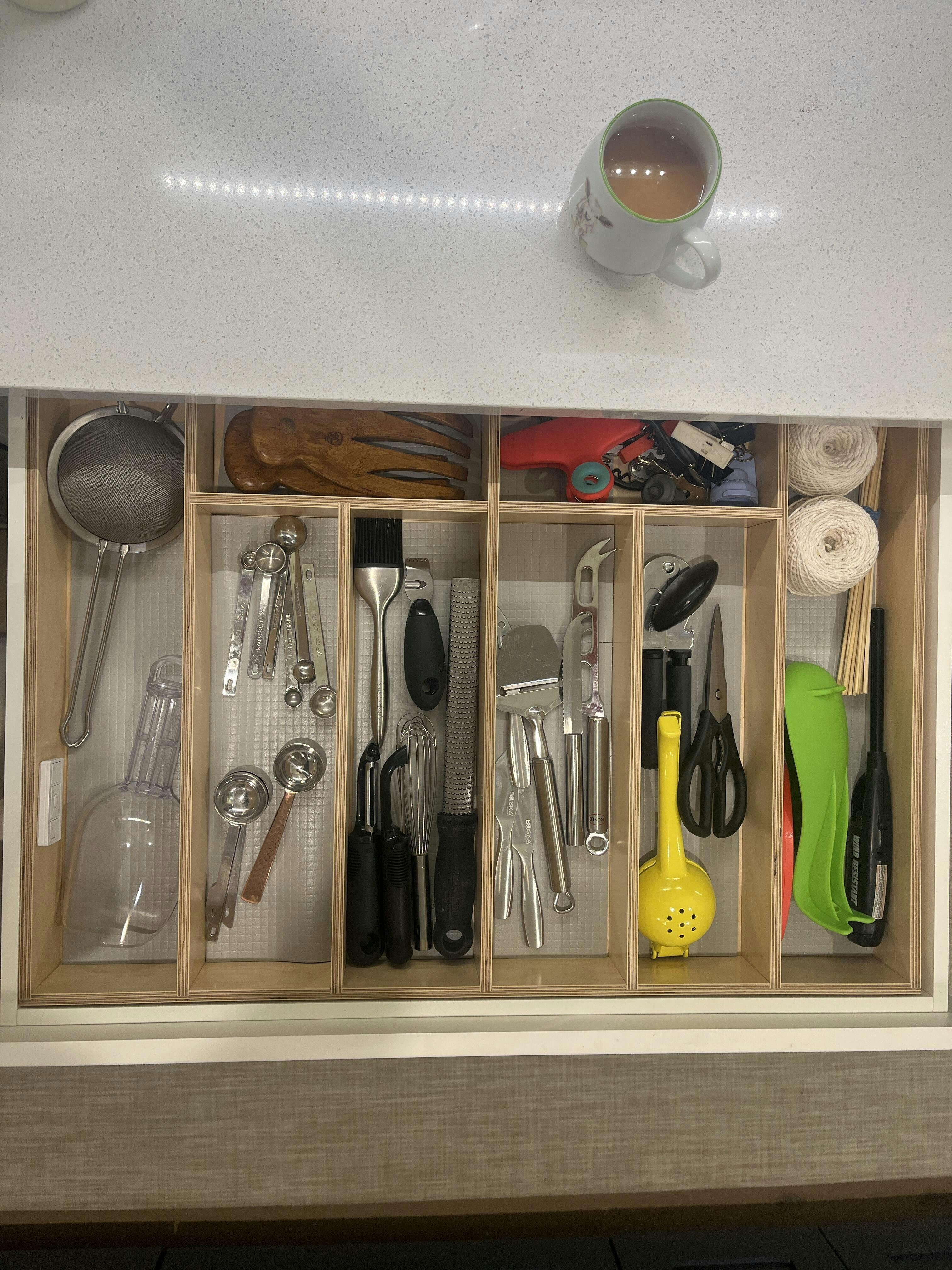 This drawer organizer turned out great, although there were a few hiccups along the way! I was originally sent one with the wrong size peg holes, but luckily the shop owner was able to assist and send out a new product quickly. Now it looks and works beautifully.